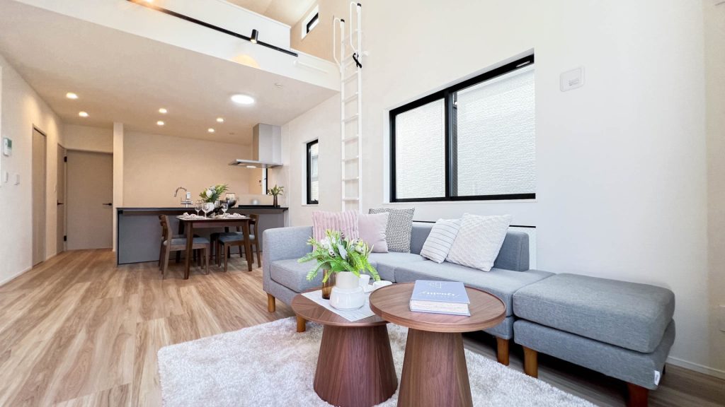 室内はモデルルーム家具を配置し、