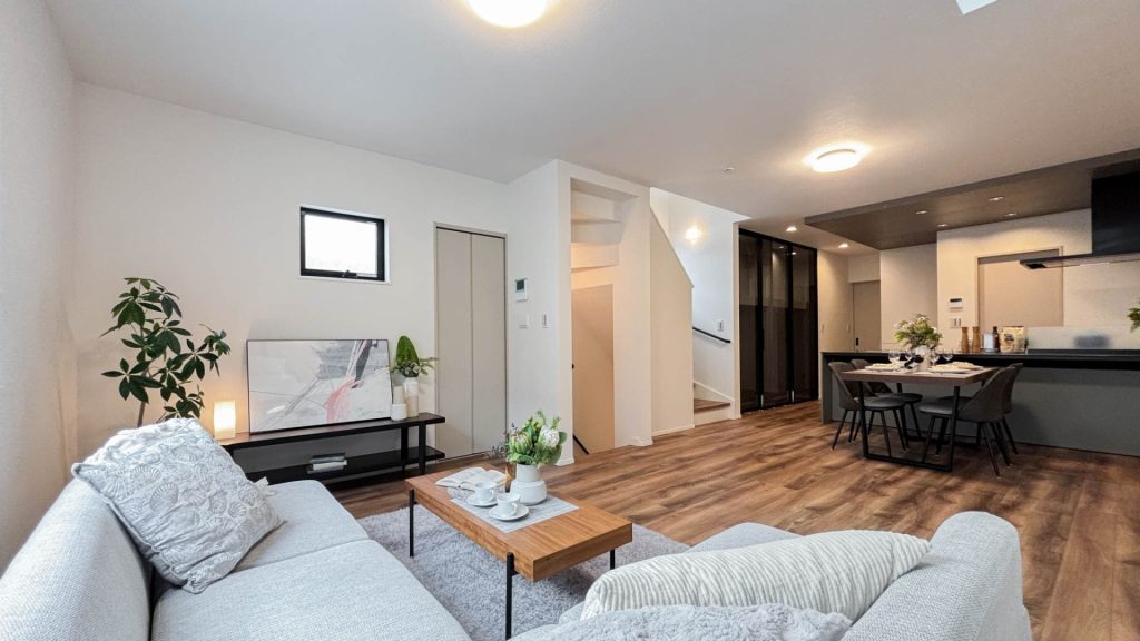 室内はモデルルーム家具を配置し、